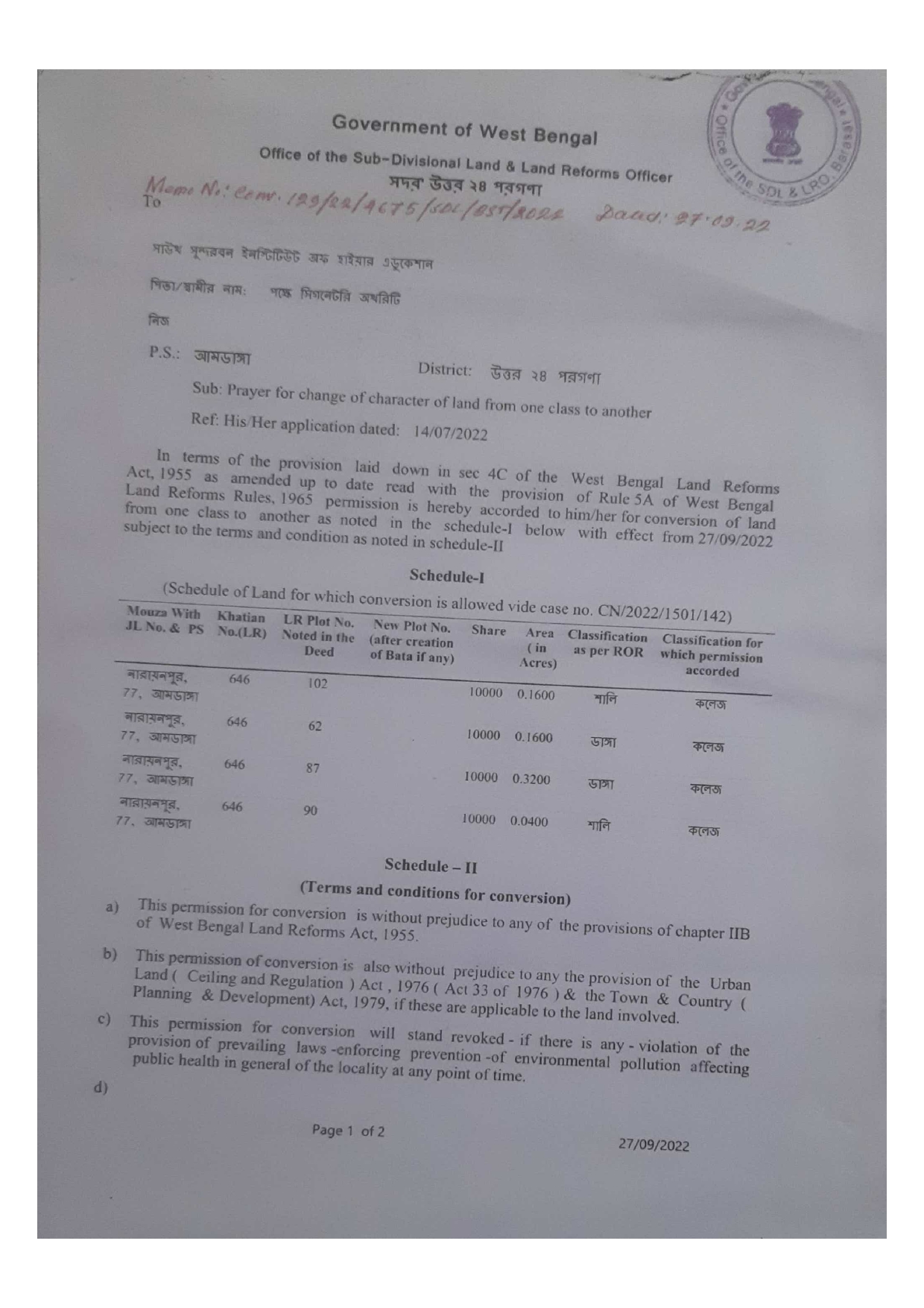 LAND CONVESRION :