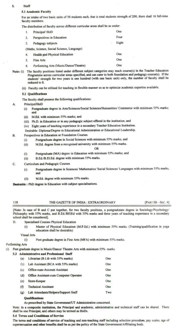 Applicatios are invited for the post of PRINCIPAL & FACULTY STAFF for new setup B.Ed. course. Qualifications as per NCTE norms.